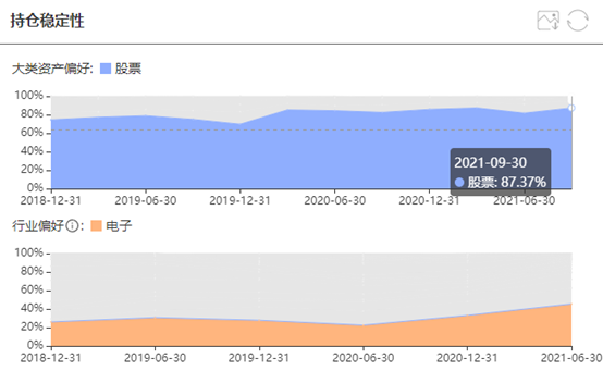 综合杨锐文旗下产品的数据,不难发现杨锐文在三季度不同程度地提高了几只代表产品的股票仓位。而他的整体股票仓位配置也从二季度的81.66%提升至三季度的87.37%。